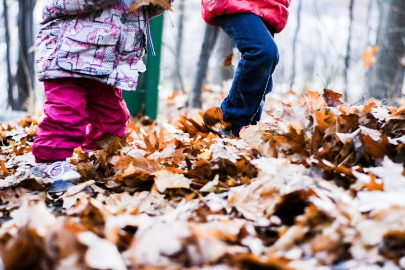 散歩や園庭あそびでは、落ち葉や木の実など秋の自然が子どもの興味を引きつけます。
